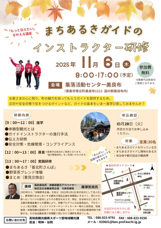 香美市香北町のまちあるきを通して、ガイドの基本を学ぶプログラムです。