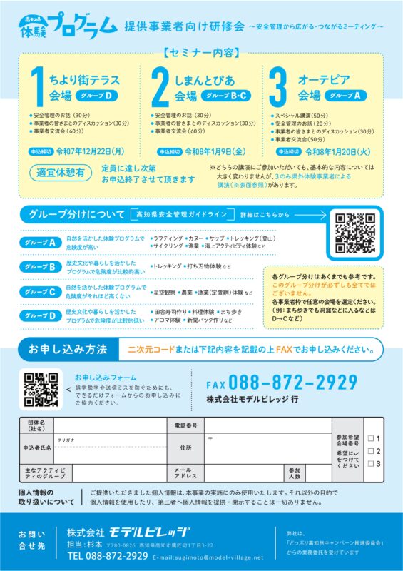 *幡多地域での開催は、しまんとぴあ(四万十市右山五月町7-7)にて2026年1月16日(金)の開催です。