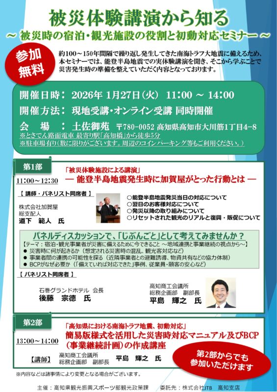 「被災体験講演から知る~被災時の宿泊・観光施設の役割と初動対応セミナー~」
