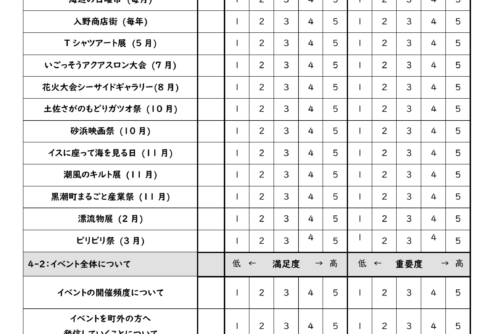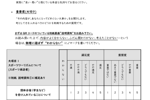 アンケートでは、スポーツツーリズム、防災ツーリズム、一般観光、町内イベントなどについて、