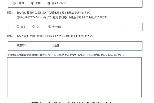 今回の調査は、黒潮町の観光を今後どのように進めていくべきかを検討するための基礎資料として、DMO活動の一環として実施するものです。