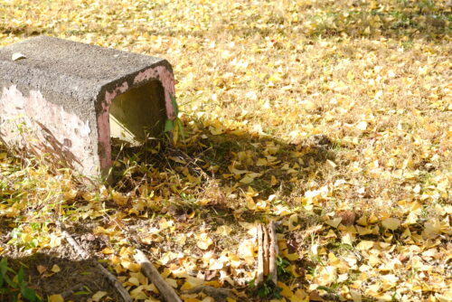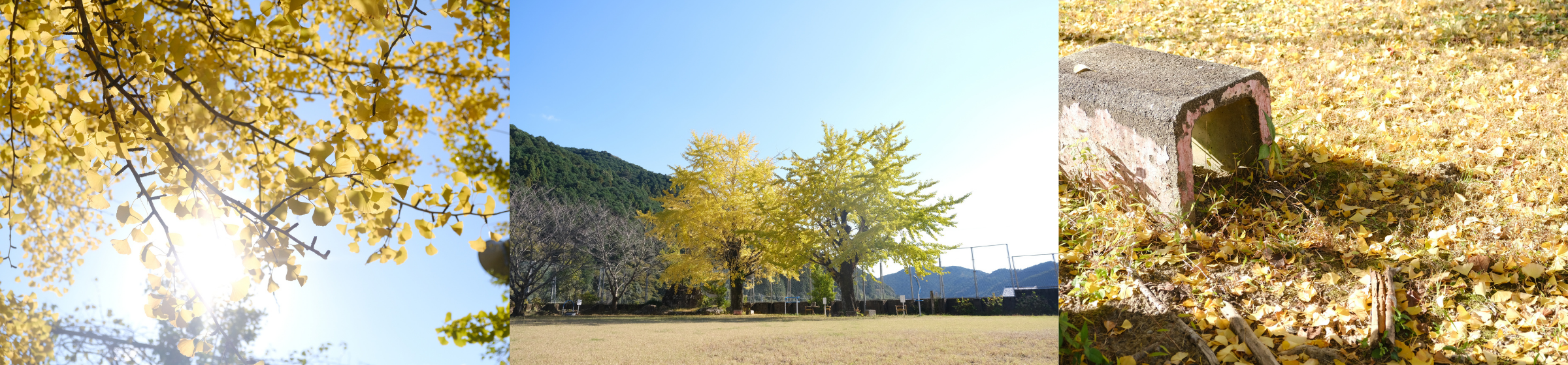 旧蜷川小学校の校庭に佇む2本のイチョウの木