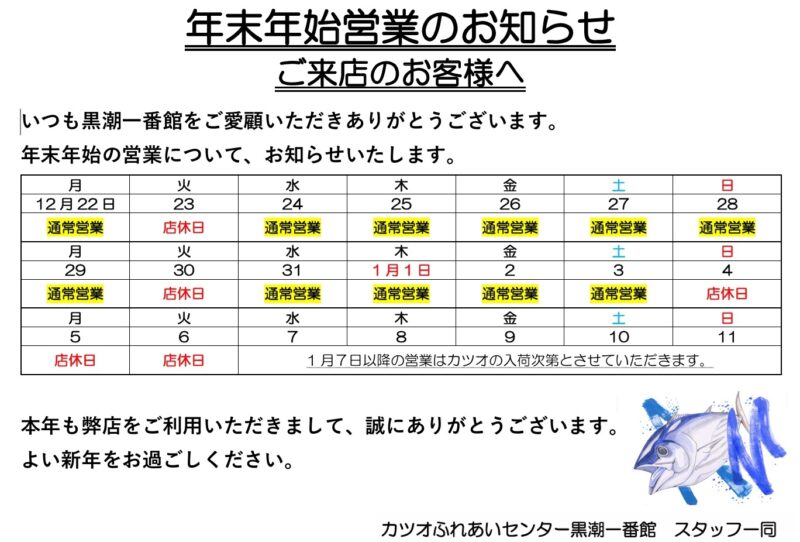 | 場所 | カツオふれあいセンター 黒潮一番館 |
