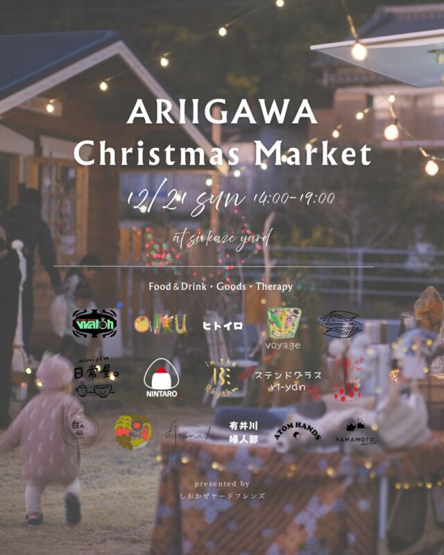 黒潮町有井川地区にある「しおかぜヤード」(ATOM HANDS・Yamamoto Market店舗敷地内)で12月21日(日)、『ARIIGAWA Christmas Market』が開催されます。