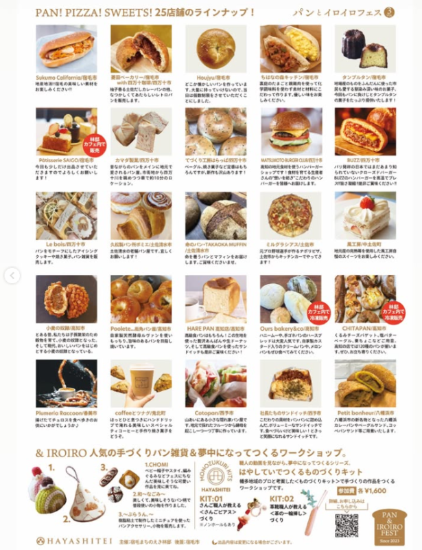 パン、ピザ、ハンバーガー、生菓子・焼き菓子、コーヒーなど、美味しいものをたくさん楽しむことができる一日です。