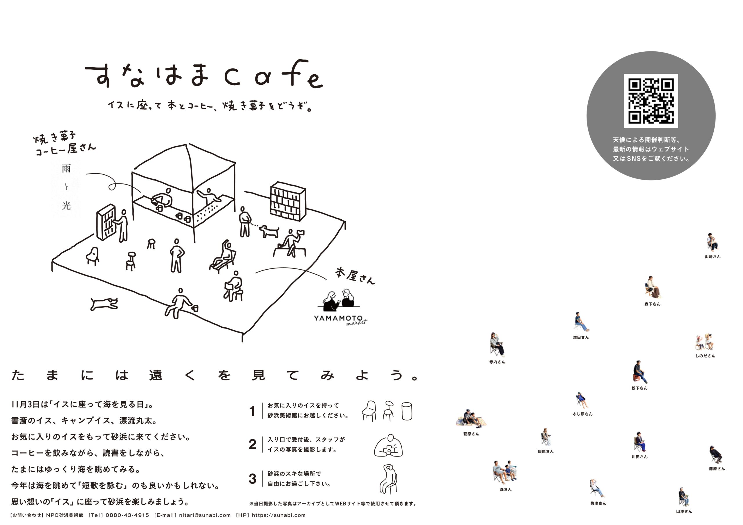 書斎のイス、キャンプイス、漂流丸太など、お気に入りのイスをもって砂浜に来てください。